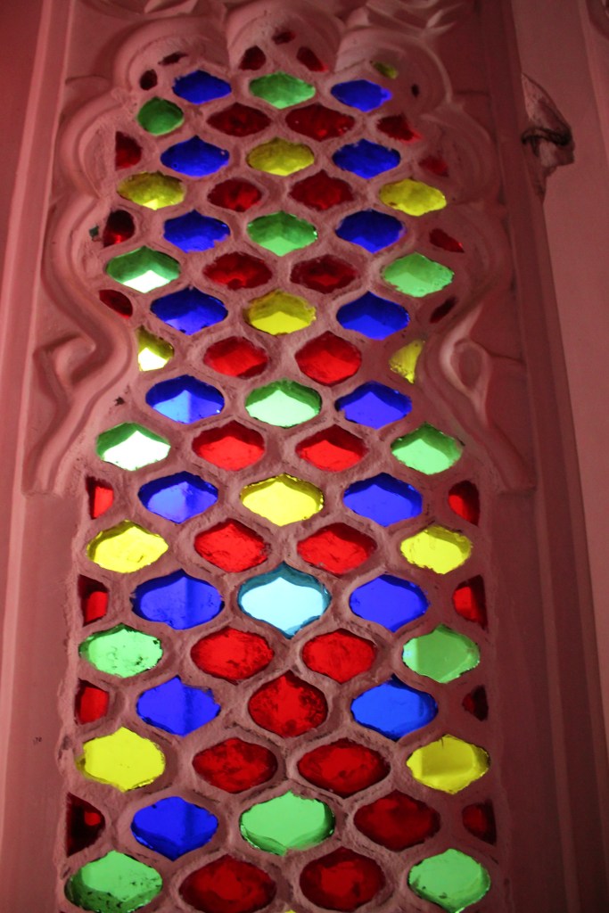 Also catching our fancy at Bagore Ki Haveli were arches, terraces, red colored rooms, & stained-glass windows. The Haveli was almost empty when we visited except for a handful of foreigners.