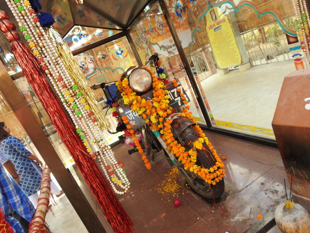 The motor bike is the idol at this temple. It draws huge crowds specially the local population. It is almost a rite of passage for bikers. Ironically, Bullet Baba is offered alcohol. We wonder how he manages to protect his drunk devotees!