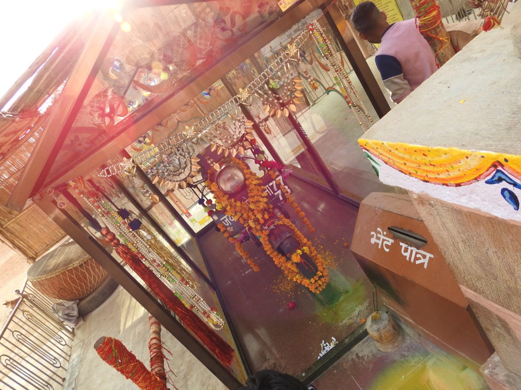 The temple is called Om Banna Dham and/ or Bullet Baba Mandir. We write the key points from our visit here.