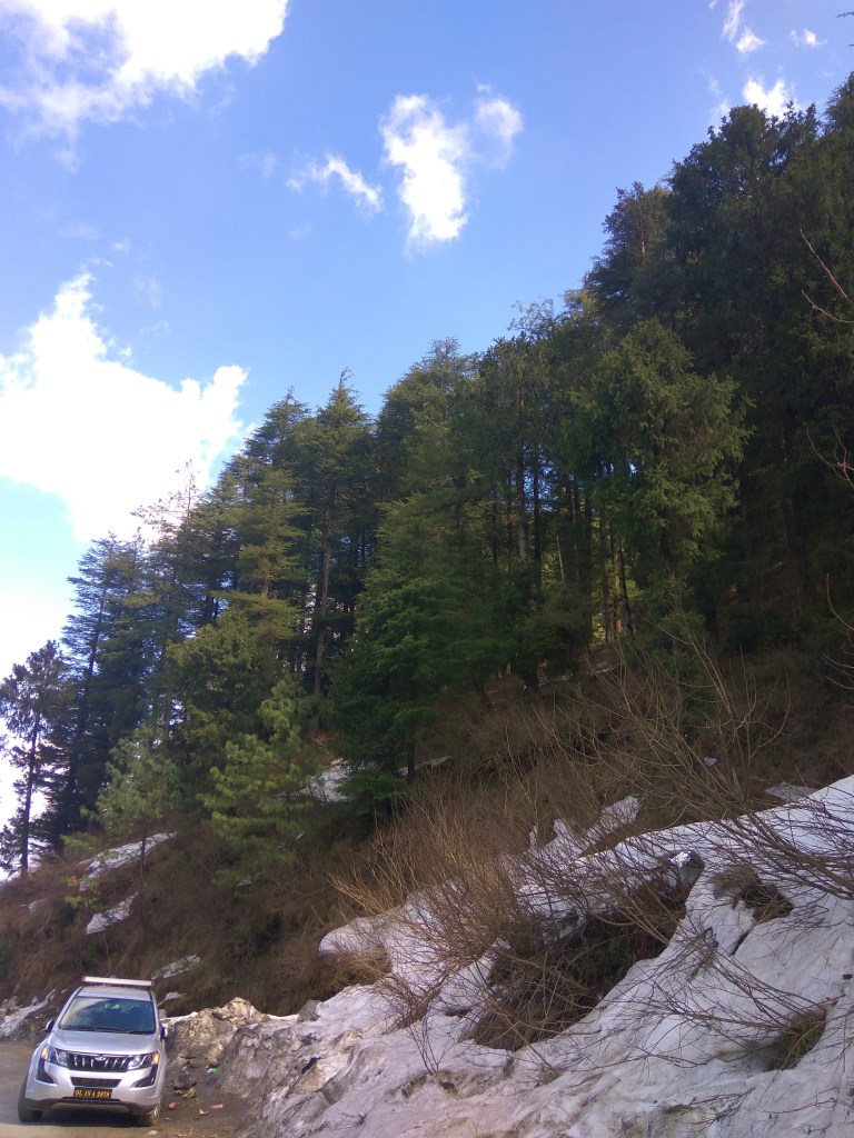 After the tiring walk, we recharged our batteries with an expedition to Fagu & Theog. We drove on till Theog, turned back & halted at Fagu for lunch. We were first surprised, then thrilled to see snow on the mountainsides in March – end!