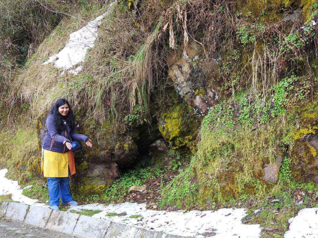 We crossed Mr. Ruskin’s Bond house & Rokeby Manor on our way. Usually, P would crib about the strenuous climb but the hail patches on the ground kept her distracted.