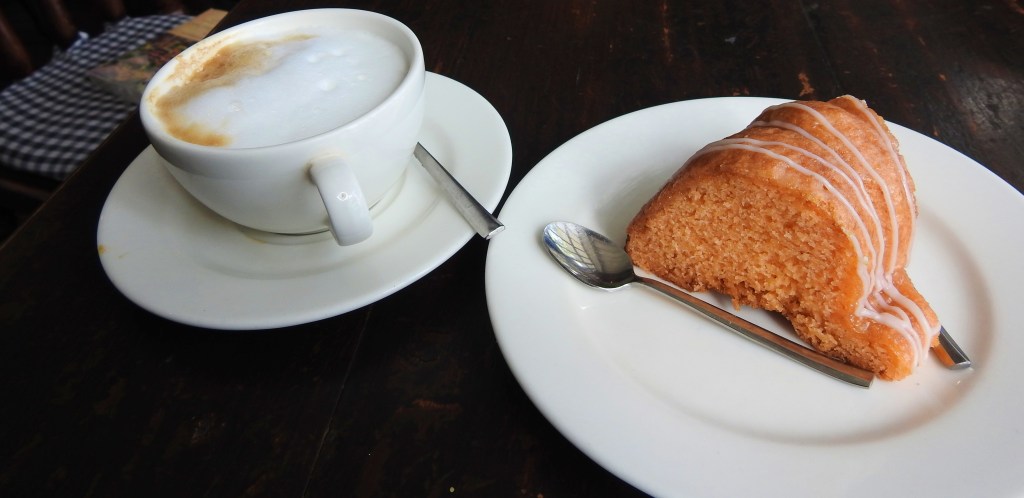With the wooden floors creaking under our shoes, we found our way to a table & ordered for a Cappuccino, a Hot Chocolate, & an Orange Marmalade Cake, and devoured these leisurely. We were taking in calories but they were worth it!