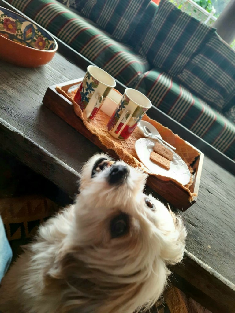 Walterre doesn’t have a set menu; the cook checked with us every day to inquire about our breakfast & dinner. We’d our breakfasts on the terrace in the company of cheeping birds!