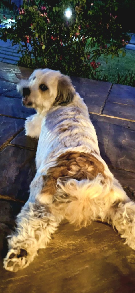 We played with Fluffy who, clearly, had the best time amongst the five of us. Such a wide-open space and no restraint of a leash! She did zoomies around the garden, dashing through even puddles.