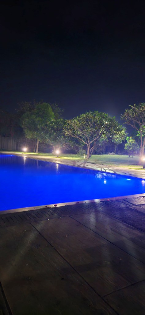 We dipped our legs in the swimming pool and then sat at the patio till the mosquitos forced us to run indoors. With the blinds folded, the view outside was the epitome of peace.
