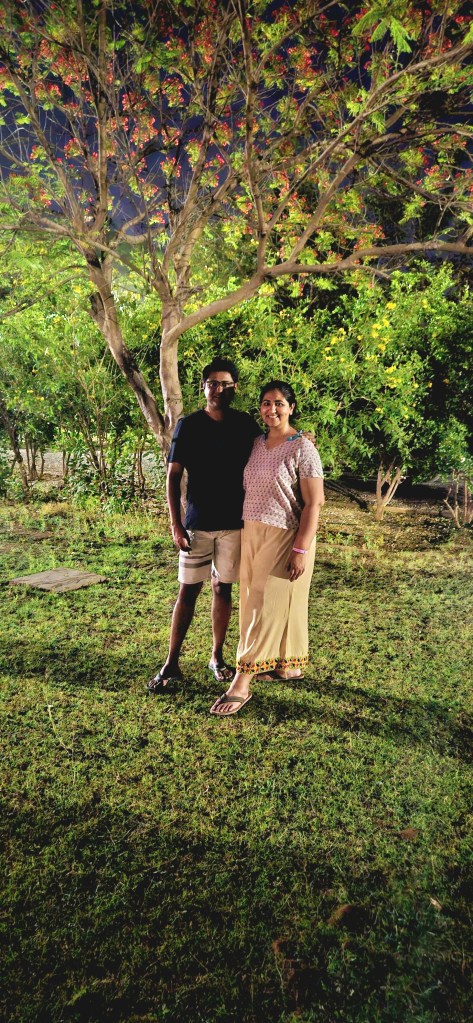 Surprisingly, the evening turned out to be extremely pleasant. We walked around the garden where Manju, Satish’s wife, showed us the different plants & trees and also helped us identify some of the birds.