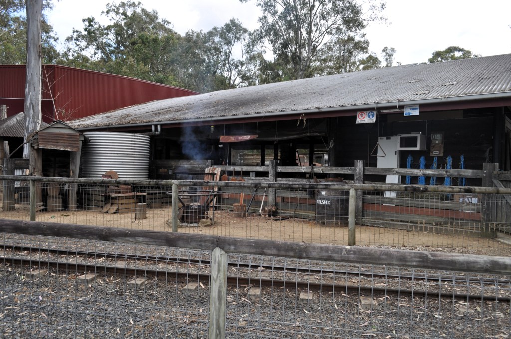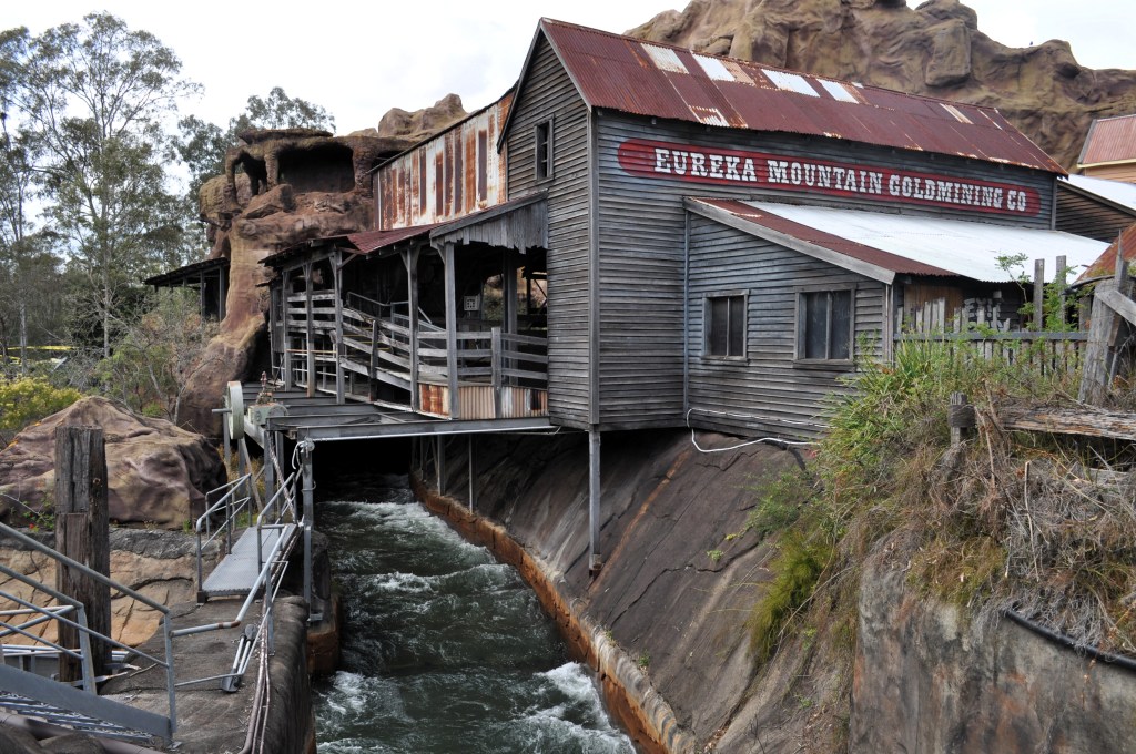 This themed area featured the Thunder River Rapids Ride & the BuzzSaw. I lined up for the latter. It was a roller-coaster, one of the seven thrill rides at Dreamworld. I was directed through pathways. TV screens embedded in the walls showed burning timber.