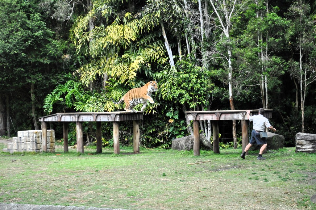 A pair of koalas did what they do best – munch on eucalyptus leaves. I then headed to a section called Tiger Island. The tigers here have been raised within the compound & are free to roam & interact with the visitors!