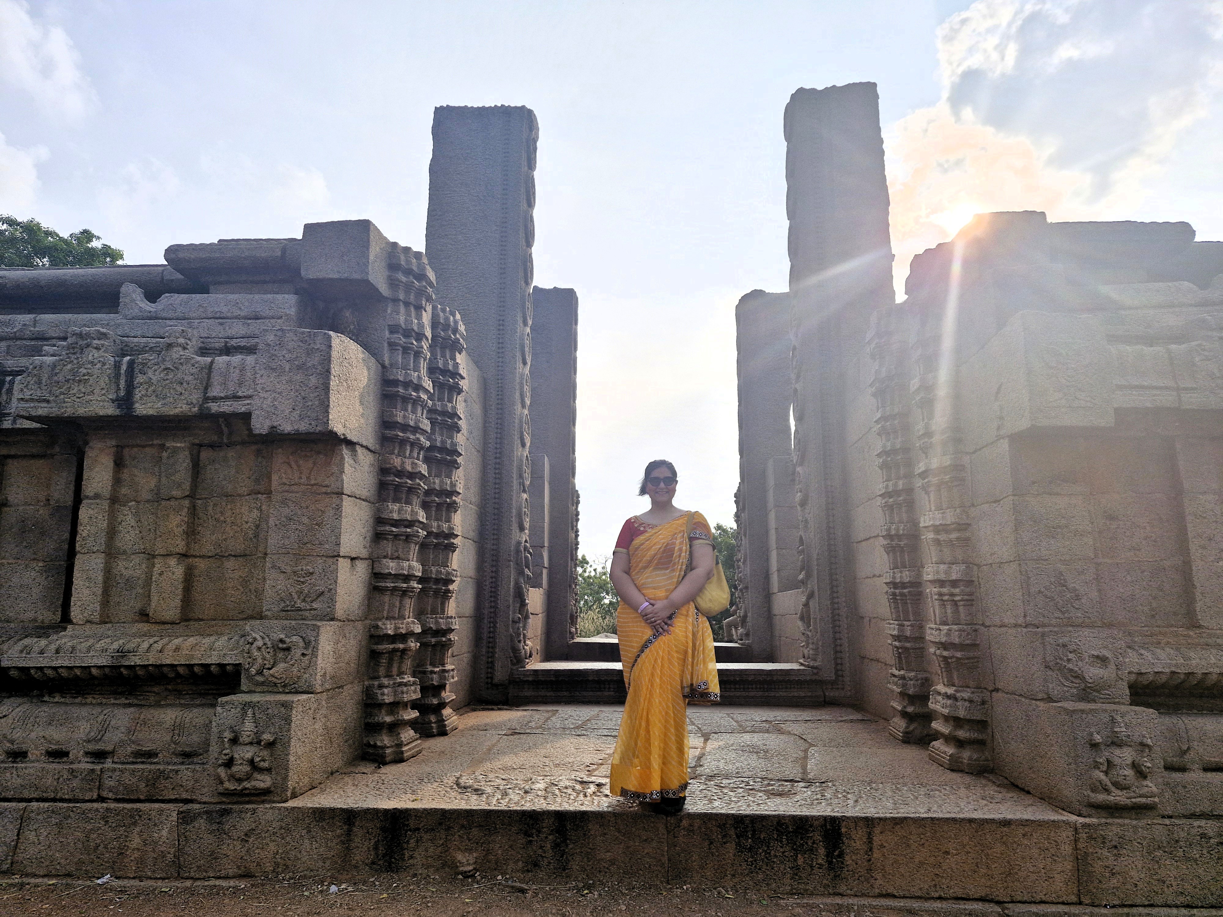 The Roya Gopuram remained incomplete, its construction having been started by Krishnadevaraya of the Vijayanagara kingdom. The pillars were meant for the gateway, along with the perimeter wall. One of the pillars has a Dashavatar carving, with Balram replacing Buddha. This plan was abandoned because the Vijayanagar kingdom dwindled.