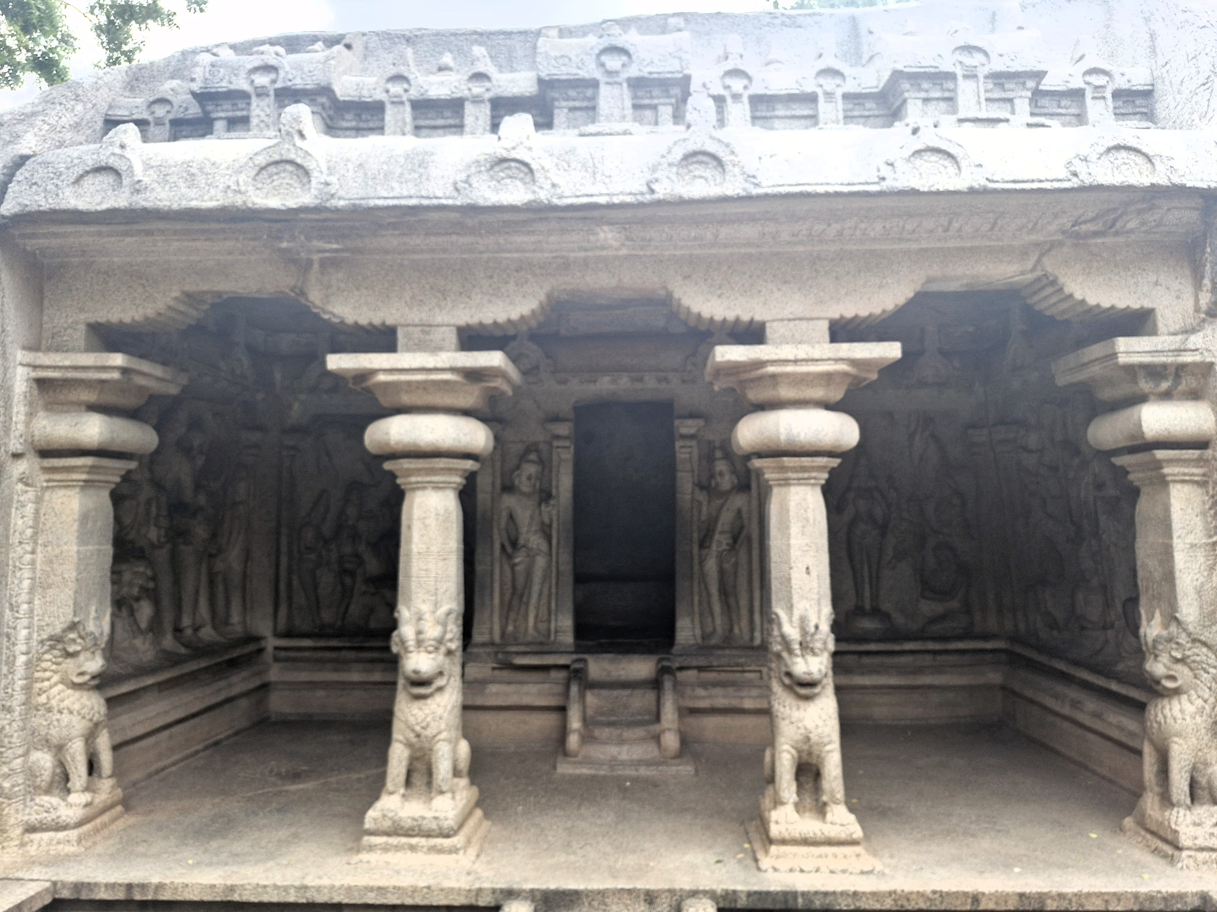 Here, you can experience the architecture of a monolithic rock-cut temple carved out of a single granite block. It features stone columns. There are also miniature shrines with deities. The temple includes exquisite carvings depicting stories from Indian mythology.