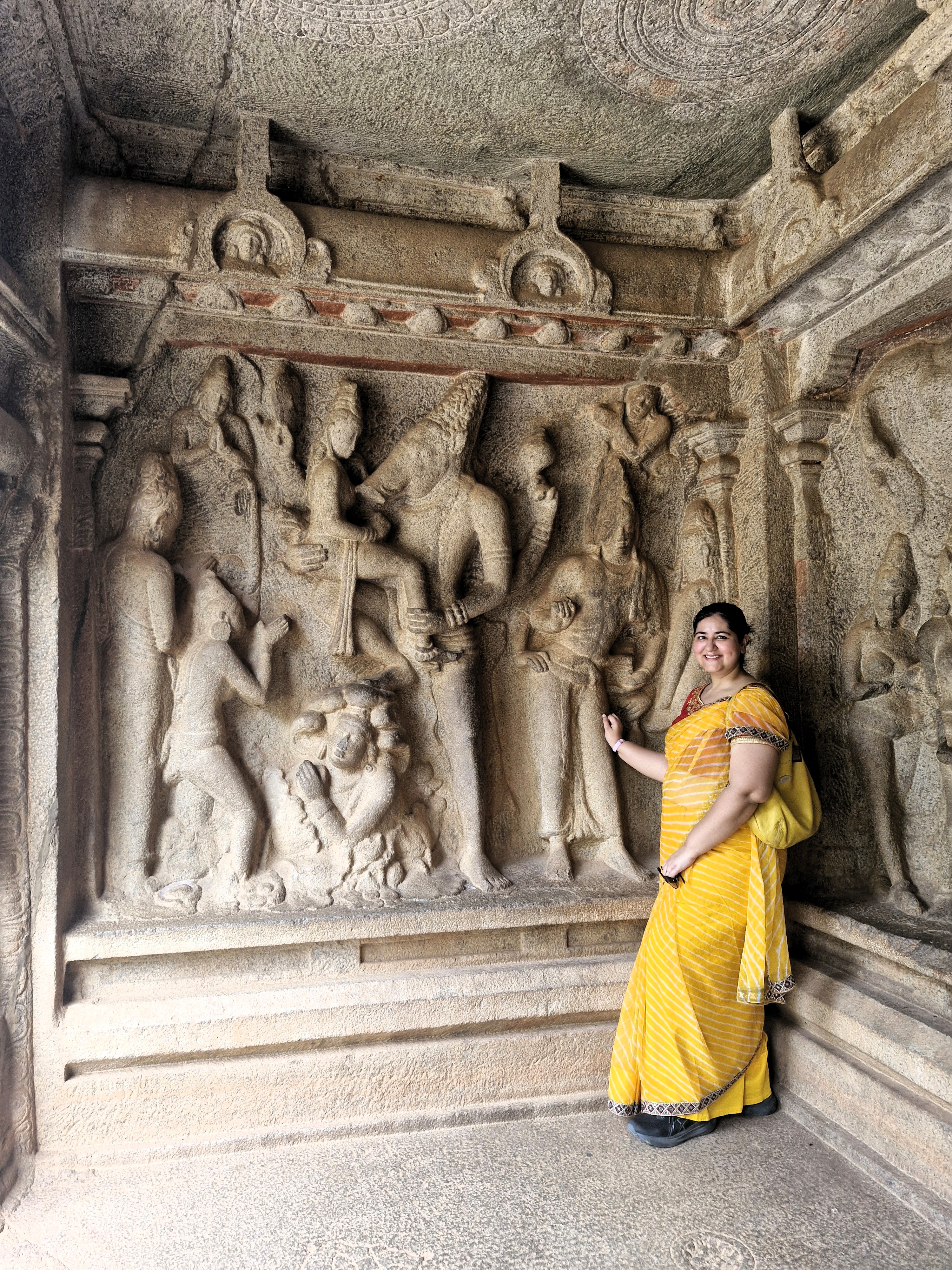 I engaged a guide, an old but energetic and friendly man called Balu G, who not just guided me through all the monuments but also bailed me out with cash when we took an auto/ when I wanted to buy a fridge magnet/ when I wanted to donate at the Arulmigu Sri Sthala Sayana Perumal Temple (me being me, I was roaming around with an empty wallet BUT UPI rocks!)