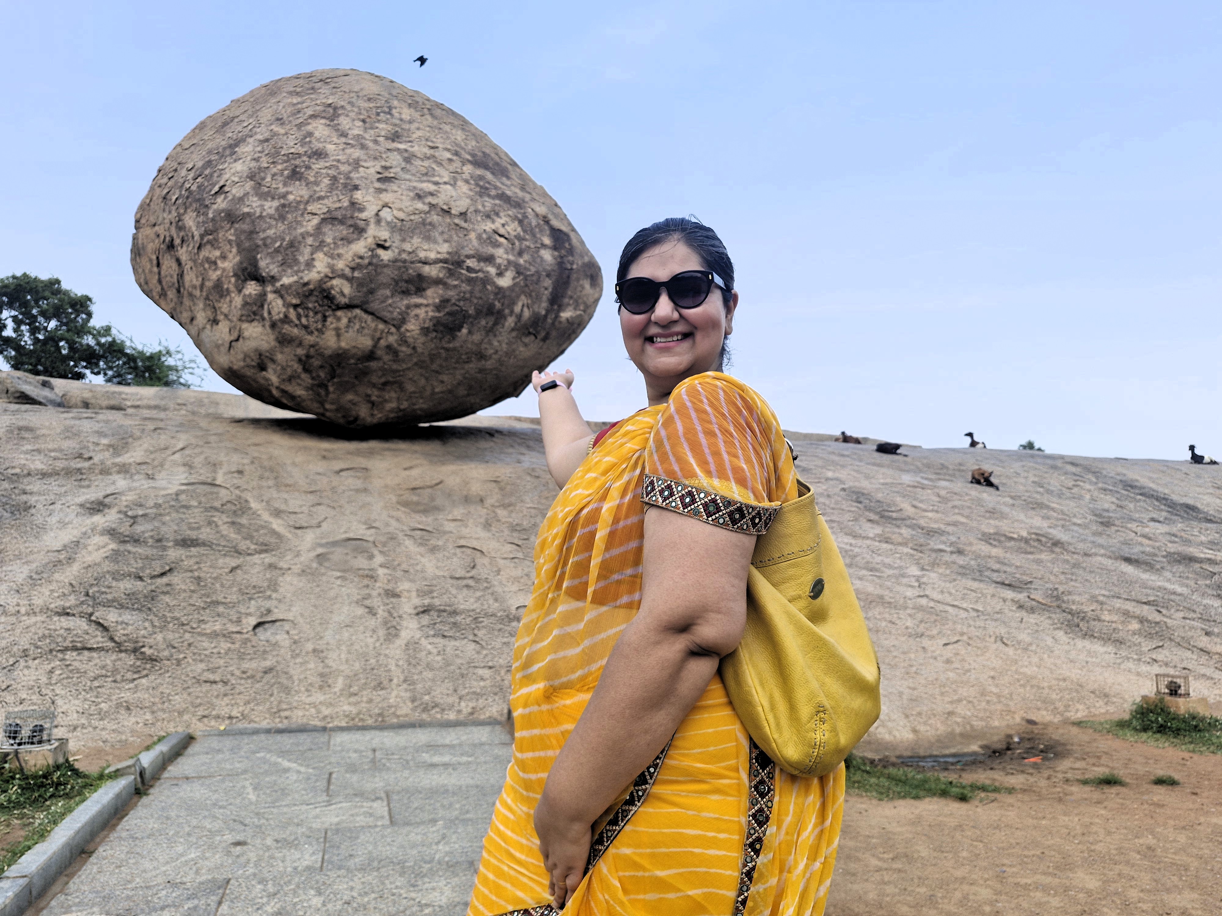 Krishna’s Butterball is a huge spherical boulder, balancing on a hillside. It is the favourite place for tourists to get their photographs clicked! I was fascinated too, NGL. You can read my independent blog post on it here.